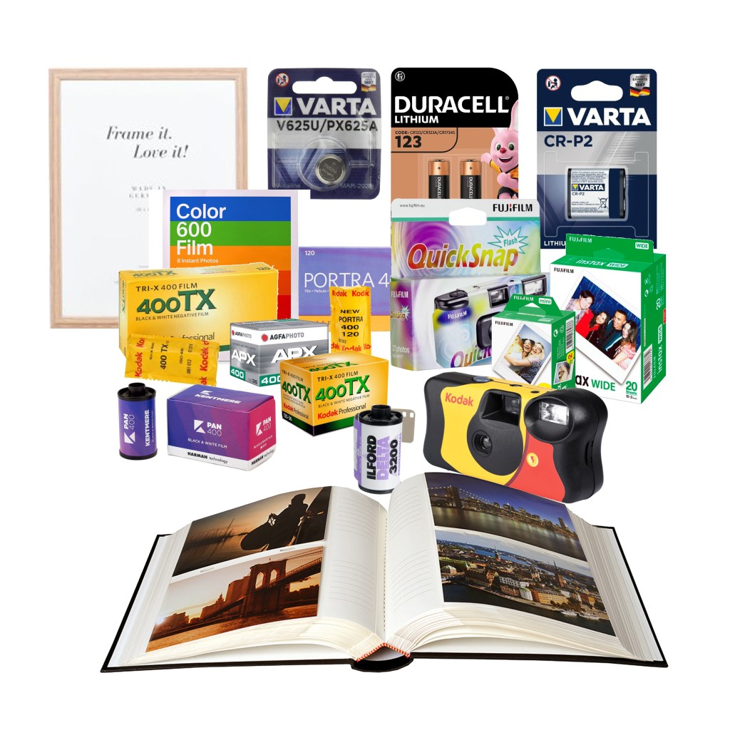 Vous trouverez également des appareils jetables, des piles, des albums et de cadres.